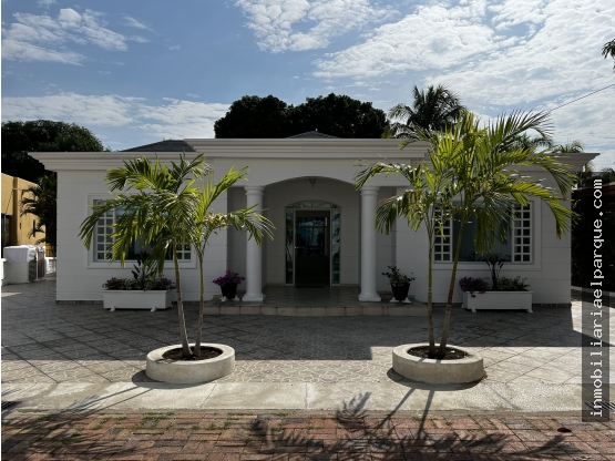 La casa de un solo nivel cuenta con garaje para 4 vehiculos o más dependiendo el tamaño, 4 salas dos de ellas exteriores, dos comedores uno de ellos junto a la piscina, jacuzi, piscina, cuatro habitaciones cada una de ellas con su closet , ventiladores y baño privado una de las habitaciones cuenta con vestier, dos baños sociales, cocina intregral amplia totalmente equipada, cuarto de insumo o despensa, baño de servicio, zona de lavado, zona bbq y área verde al rededor de la piscina. La casa estrato 6 con un área de lote de 671.76 mts2 y de construcción de 376 mts2 cuenta con servicios de agua y energía, el gas es de pipeta.